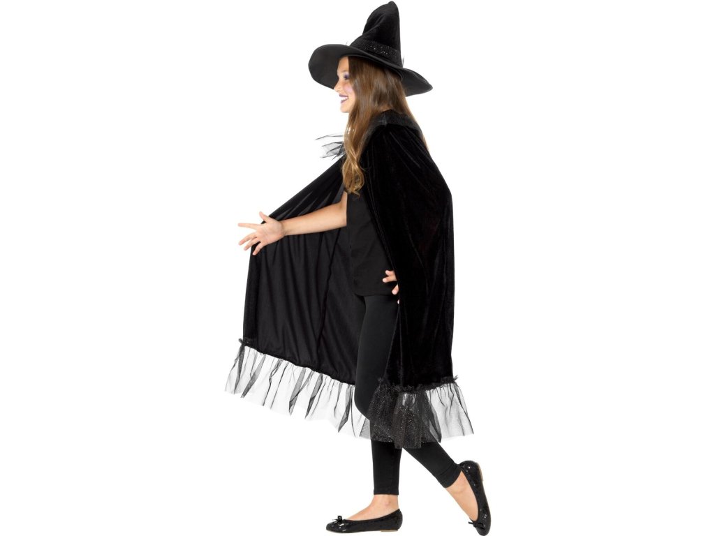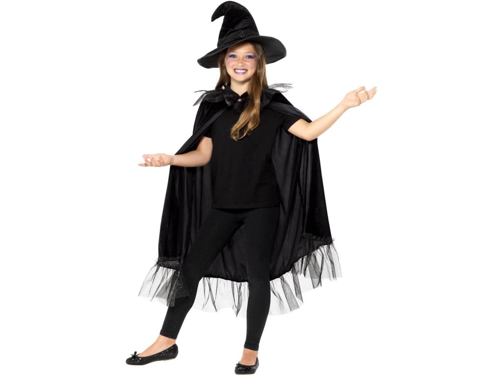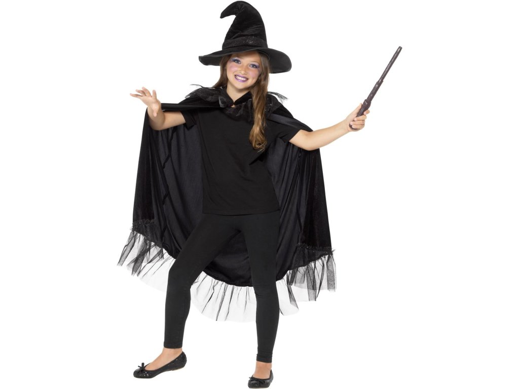 Každá malá slečna, která se chystá na pálení čarodějnic musí mít vhodný kostým. Černý plášť poslouží jako doplněk čarodějnického kostýmu, ale také jako ochrana před chladným počasím. Hlavu ozdobí zahnutý klobouk, bez kterého se kouzelnice neobejde.