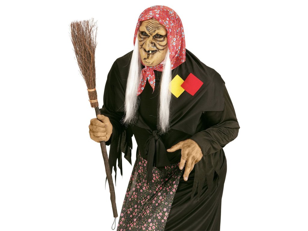 Nemáte dost odvahy a nebo vám chybí zručnosti při tvoření make-upu děsivě vypadající čarodějnice a chystáte se na Halloween nebo na karneval v den pálení čarodějnic? Latexová maska čarodějnice s vlasy je nejjednodušším řešením a zaručeně nažene hrůzu všem přítomným díky autentickému vzhledu, který masce dodávají vrásky, kruhy pod očima a bradavice. Masku je vhodné doplnit šátkem. Masku můžete kdykoliv sundat a jste to zase vy.