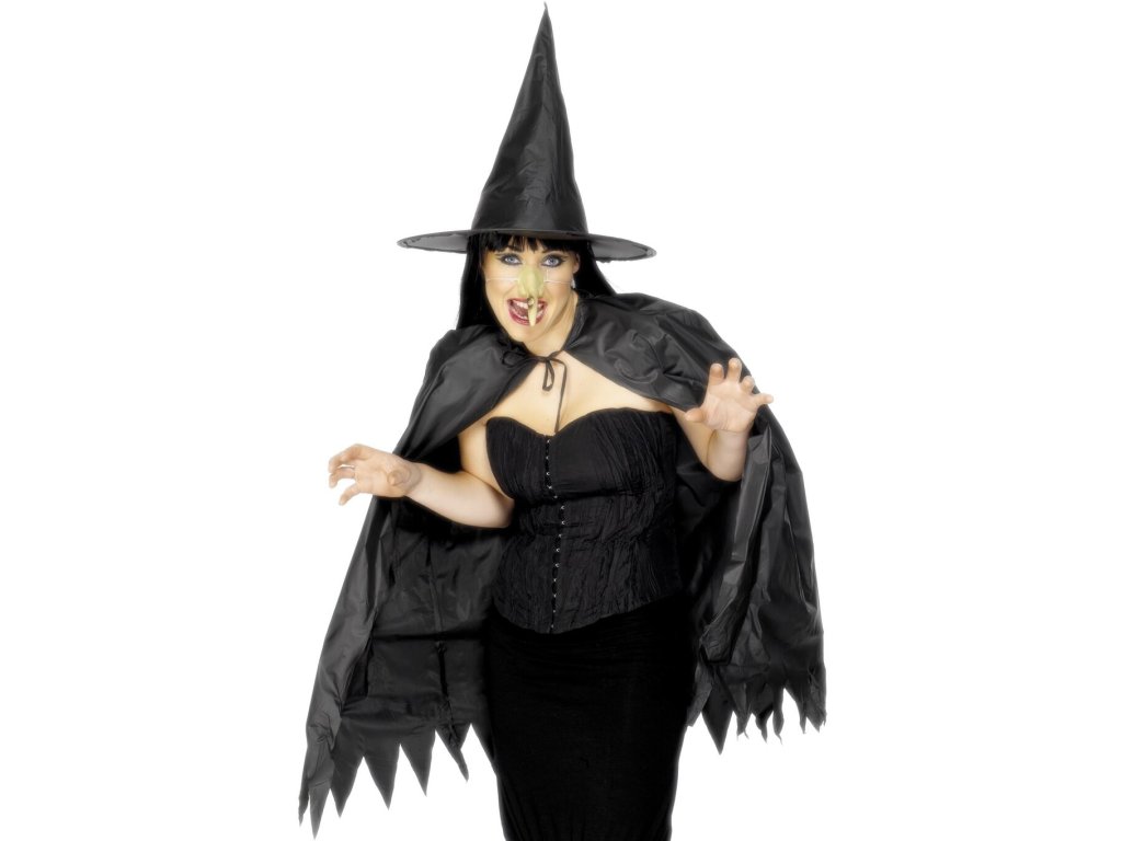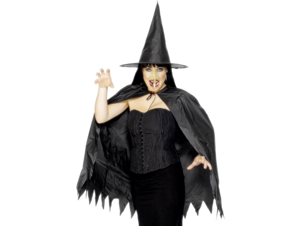 Špičatý klobouk, černý plášť a zahnutý nos s bradavicí. To jsou doplňky pro správnou čarodějnici nebo ježibabu. Tuto čarodějnickou sadu nejlépe využijete na den pálení čarodějnic nebo na halloweenské oslavě.