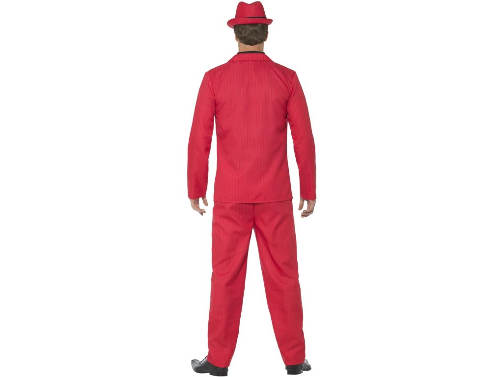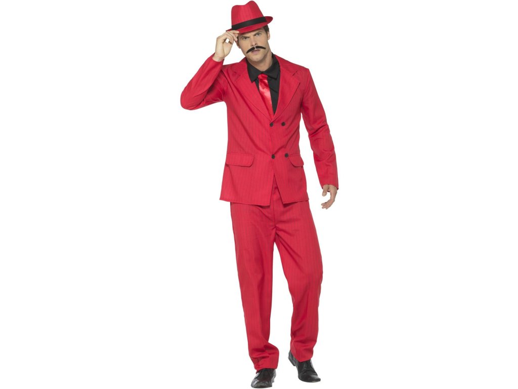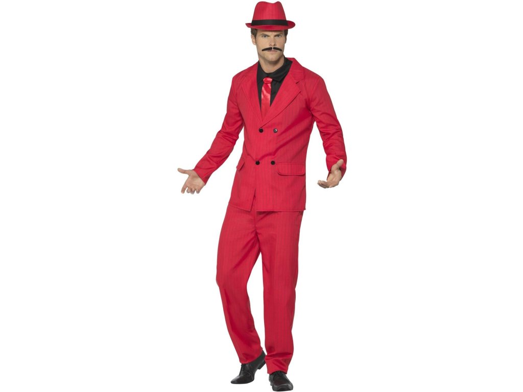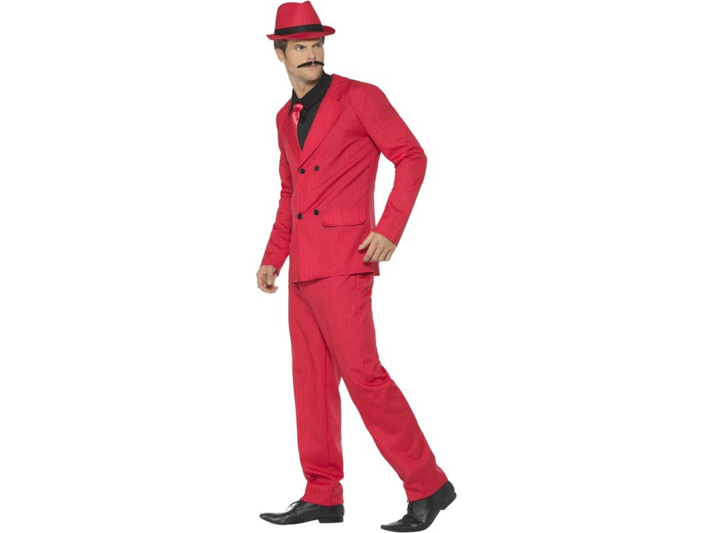 30. léta minulého století se vyznačovala nejen charlestonem, ale také prohibicí, mafií a jazzem. K tomu také patřila specifická móda. Červený kostým mafiána využijete na karnevalovou párty ve stylu 30. let, mafiánských plesech a jazzových koncertech. Celý pánský oblek zdobí tenké černé proužky.