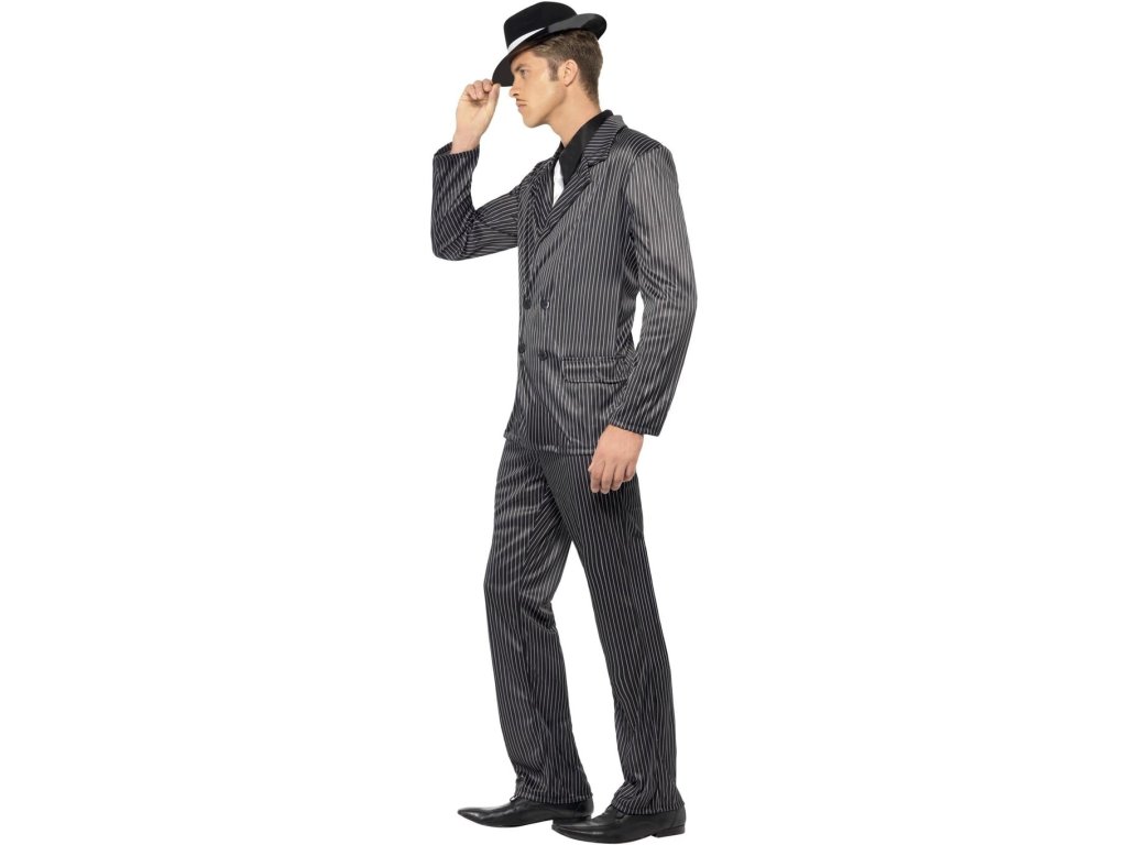 30. léta minulého století se vyznačovala nejen charlestonem, ale také prohibicí, mafií a jazzem. K tomu také patřila specifická móda. Kostým mafiána využijete na karnevalovou párty ve stylu 30. let, mafiánských plesech a jazzových koncertech. Celý pánský oblek zdobí tenké bílé proužky.
