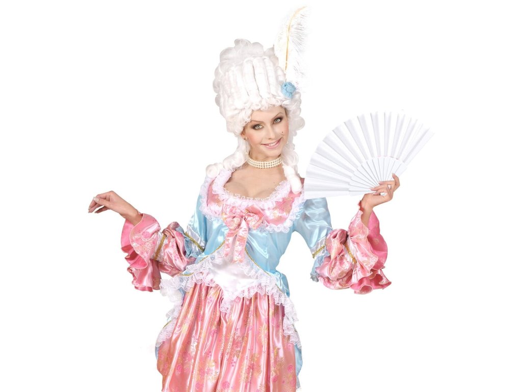 Bílý látkový vějíř s plastovou rukojetí vám zajistí úlevu v horkých letních dnech či přinese čerstvý příliv vánku v zápalu tance ve vydýchaných sálech konajících se akcí. Hodí se k historickým kostýmům a také na párty ve stylu 30.let.