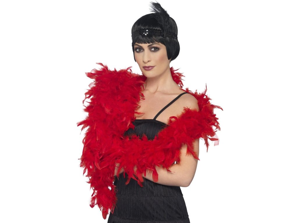 Elegantní péřové boa je nezbytným doplňkem dámských kostýmů z 30. let. Díky boa jednoduše oživíte i obyčejné šaty. Peříčka mohou opadávat, takže budete trochu jako Popelka, která ztratila střevíček. Péřové boa využijete nejen na večírky ve stylu 30. let, ale i na silvestrovské párty, večírky inspirované Hollywoodem, kostým sexy čertice a další příležitosti.