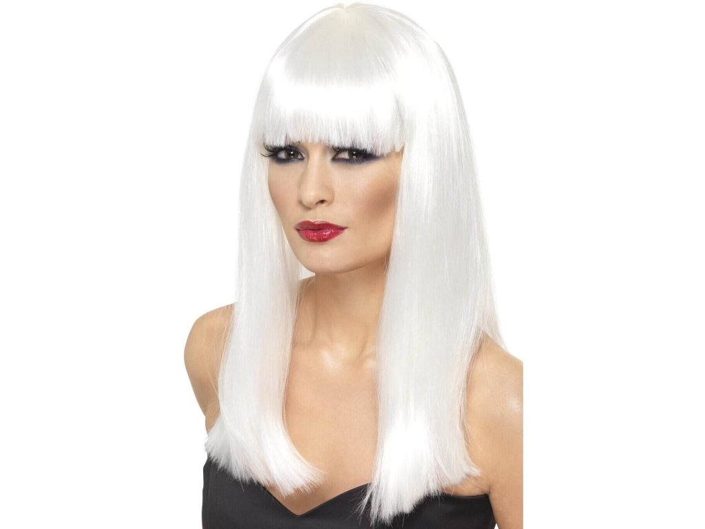 Dlouhá rovná bílá paruka s ofinou bude tím správným účesem ke kostýmu ducha či jakéhokoliv jiného strašidla, za kterého se máte v plánu vydat na Halloweenskou párty.