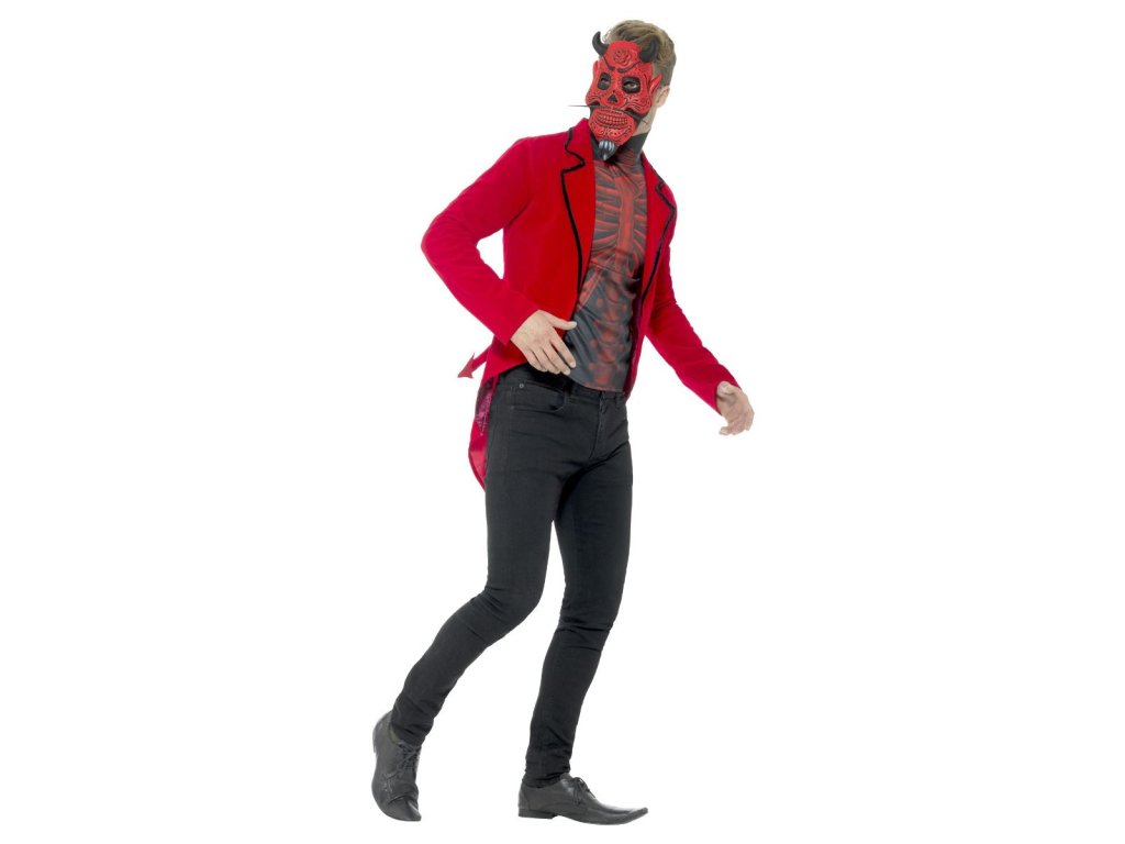 Den mrtvých je oslavou, na které jsou kostlivci s barevnými make-upy a kostýmy doplněnými především růžemi. Proč ale nezvolit netradiční kostým? Oblékněte kostým čerta v podobě červeného saka a trička na kterém je potisk kostí. Celý vzhled doladí maska čerta.