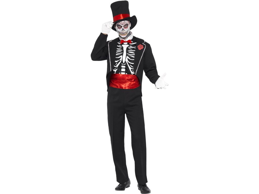 Staňte se elegánem na Halloweenu. Oblékněte černé sako s trikem, na kterém je potisk kostí a na hlavu nasaďte vysoký cylindr. Šmrnc vám také dodají rukavice. Vydejte se v kostýmu kostlivce na karneval ve stylu den mrtvých a zaujměte některou s přítomných dam.