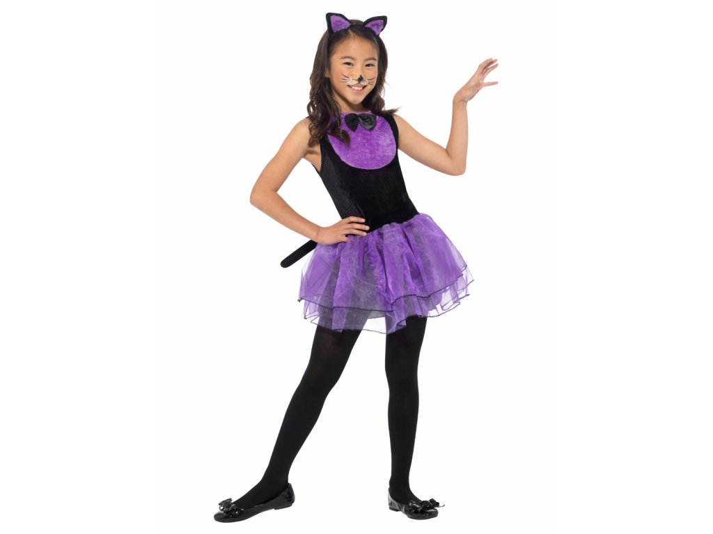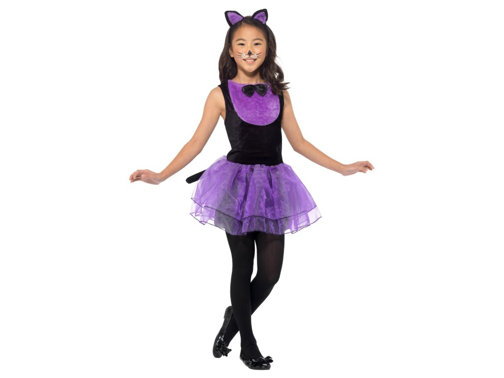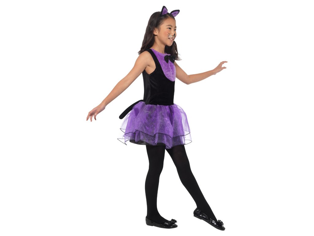 Na dětský karneval je potřeba zvolit vhodný převlek. Kostým kočky oslní zaručeně všechny přítomné. Černofialové šaty s tutu sukní jsou ozdobeny černým ocáskem a motýlkem. Co by to bylo ale za kočku, kdyby neměla ouška? To za vás vyřeší čelenka s ušima a vaše ratolest bude připravena v mžiku vyrazit na karneval.