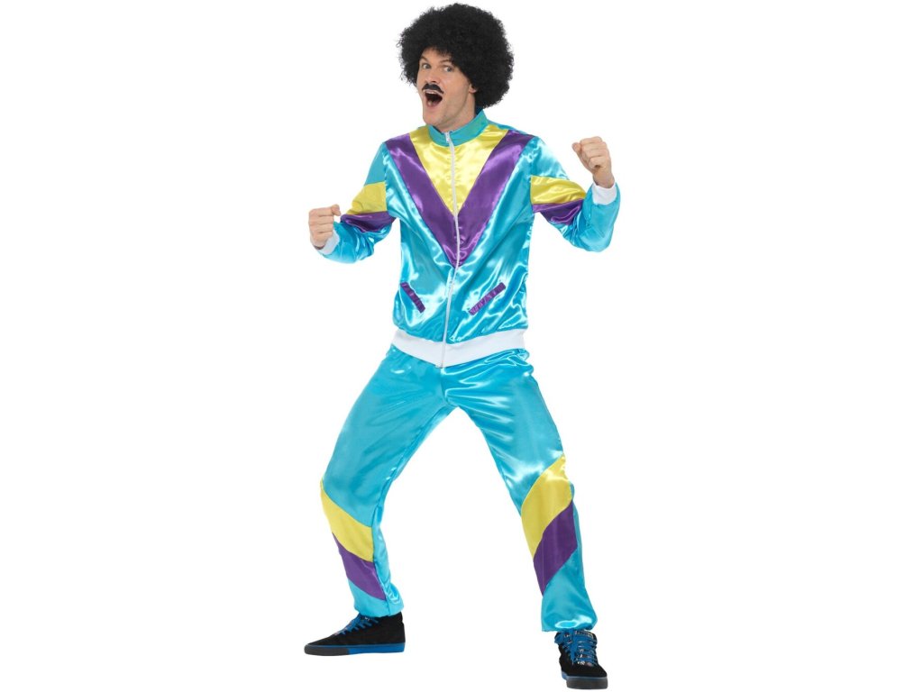 Kdo ve své době neměl barevné šusťáky, jako by nebyl. Tento kdysi stylový kousek nosili lidé při různých příležitostech a diskotéka nebyla výjimkou. Modrá šusťáková souprava ve stylu disco 80. let bude přesně to, co hledáte na tématickou párty.