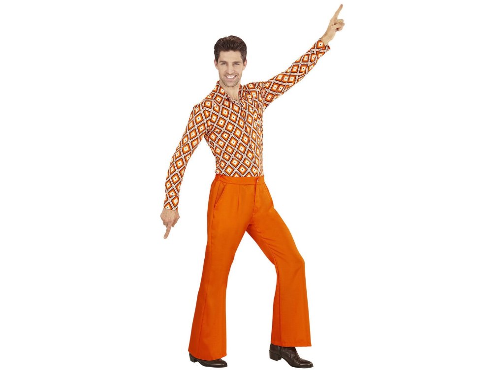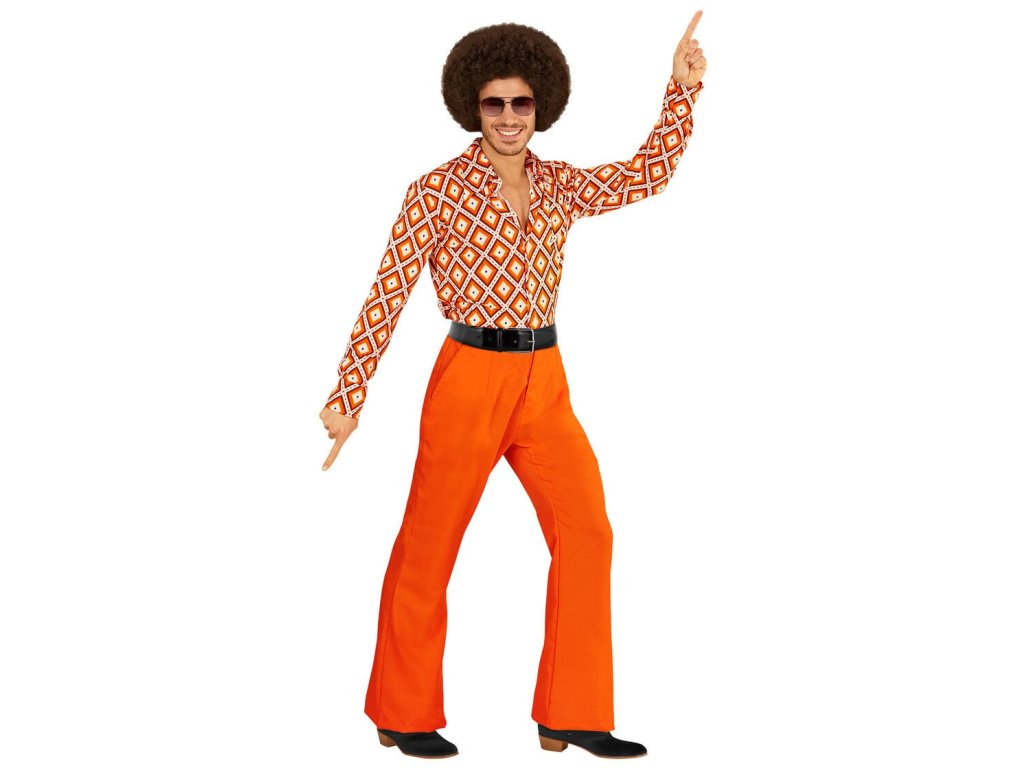 Chystáte se na párty ve stylu 80. let a nevíte co na sebe? Nejjednodušeji tento problém vyřešíte volbou disco převleku. Kalhoty v oranžové barvě vám dodají ten správný šmrnc. Jednoduchou část outfit dolaďte tričkem či košilí dle svého vkusu. Celý převlek doplňte zlatým řetězem a nebo třeba legendární mullet parukou a rázem z vás bude disco hvězda.