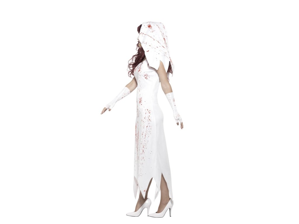 Která dívka by si alespoň jednou v životě nechtěla vyzkoušet roli krásné nevěsty. Tato svatba se ale ovšem pokazila ve chvíli, kdy na ni vtrhli po mase dychtící zombie. I vás napadli a pokousali a vaším jediným cílem teď je, dostat na stranu nemrtvých i svého vyvoleného. Jako zombie nevěsta zazáříte na strašidelném večírku nebo Halloweenu.