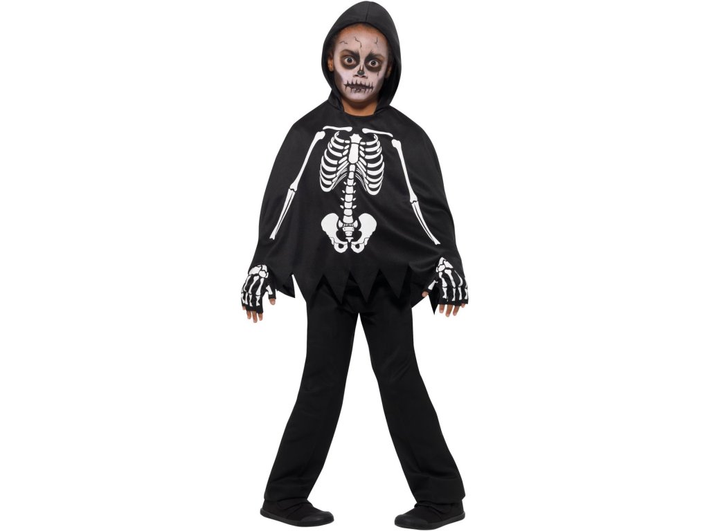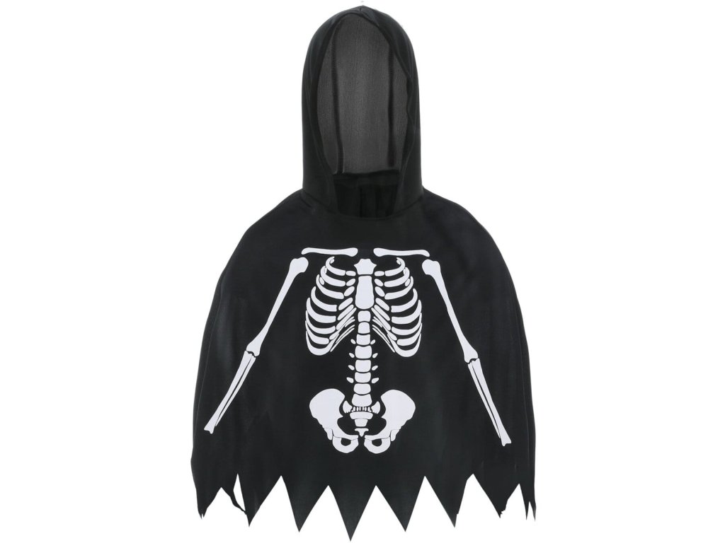 Dnešní děti mají tak trochu pro strach uděláno a tak ani ony se nebojí vyrazit na Halloween či večerní lampionový průvod ve strašidelném kostýmu. A které dítě by nechtělo vyrazit třeba právě za kostlivce? Dětský set pončo a rukavice Kostlivec bude tou správnou volbou, jak vyřešit kostým této příšery. Pak už stačí jen doladit make-up, vzít atrapu kosy do ruky a vyrazit ven postrašit smrtelníky.