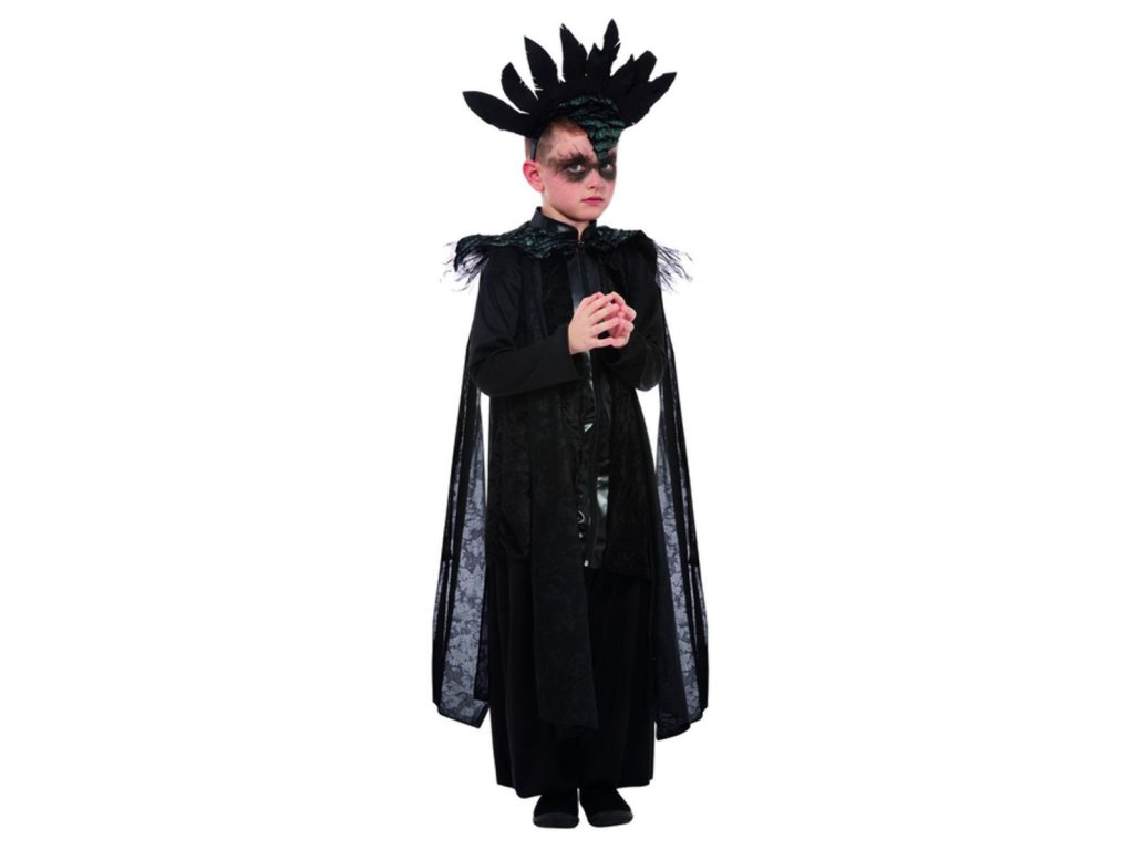 Netradiční převlek využije vaše ratolest na Halloween nebo strašidelný dětský karneval. Kostým havraního prince vzbudí ve všech zvědavost, proč právě on na party přišel. Všechny princezny se před tím budou mít na pozoru.