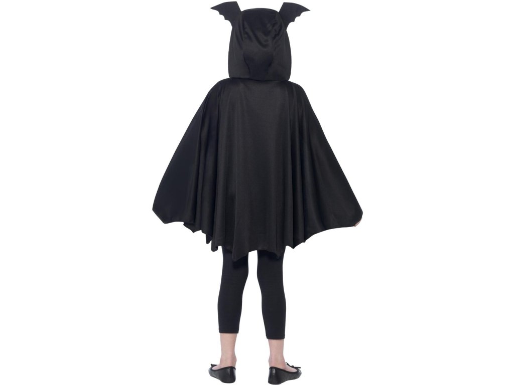 Černý dětský netopýří plášť s kapucí a oušky. Zápínání na suchý zip.