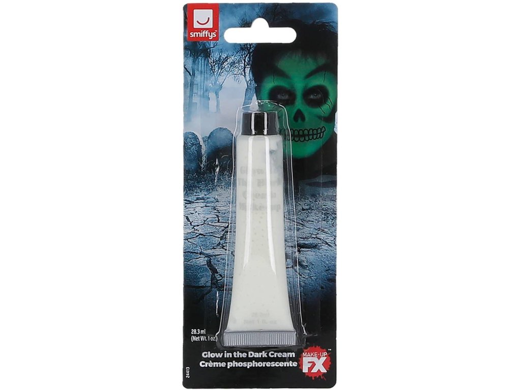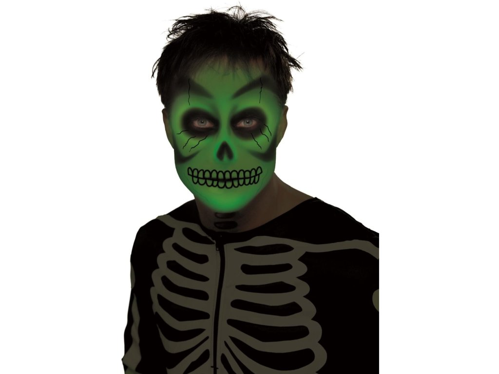Fosforeskující barva na obličej dodá vašemu strašidelnému líčení nový rozměr. Strašit totiž můžete i za tmy.
