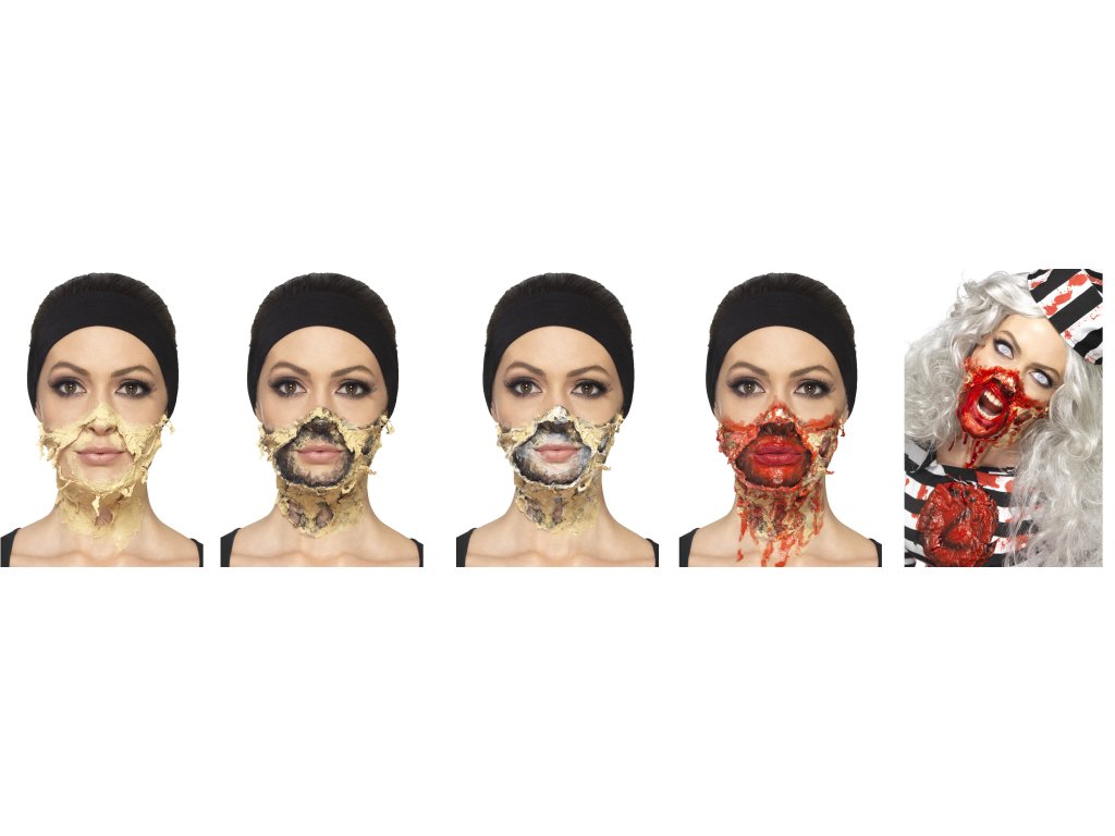 • po zaschnutí ho můžete ostrým předmětem natrhat, dolíčit a vyplnit falešnou krví