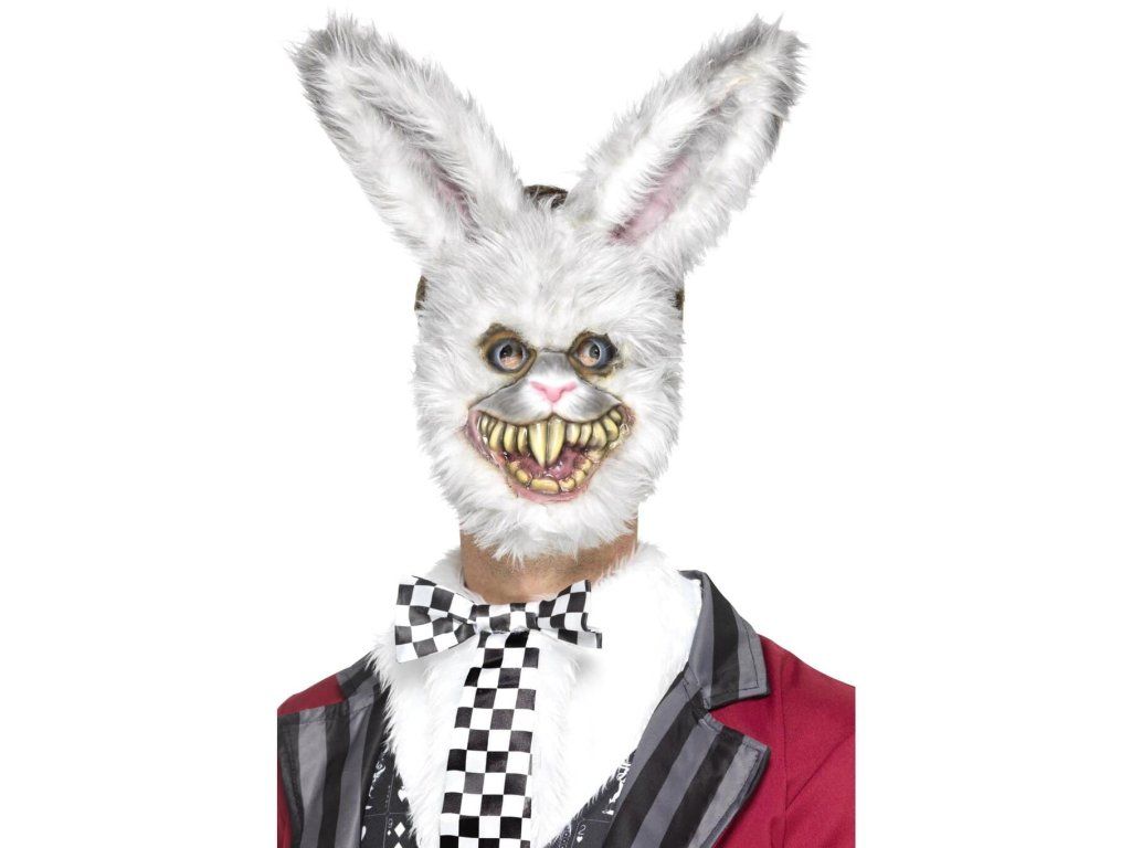 Chlupatá maska bílého králíka na obličej.