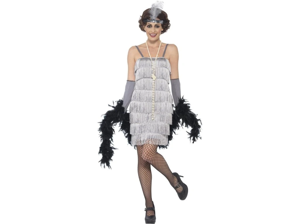 30. léta minulého století se vyznačovala nejen charlestonem, ale také prohibicí, mafií a jazzem. K tomu také patřila specifická móda. Stříbrné flapper šaty s třásněmi využijete na karnevalové taneční zábavy ve stylu 30. let, mafiánských plesech a jazzových koncertech.
