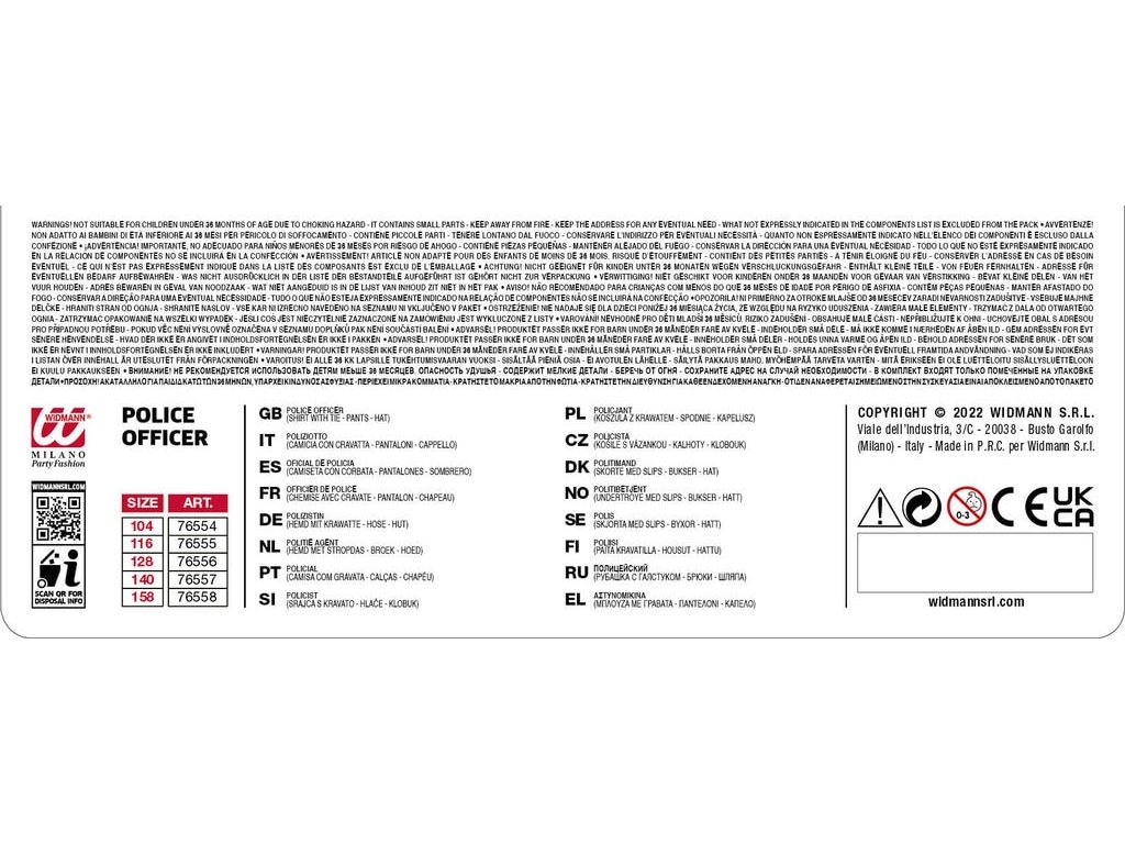 Obsah balení: košile s kravatou, kalhoty, čepice