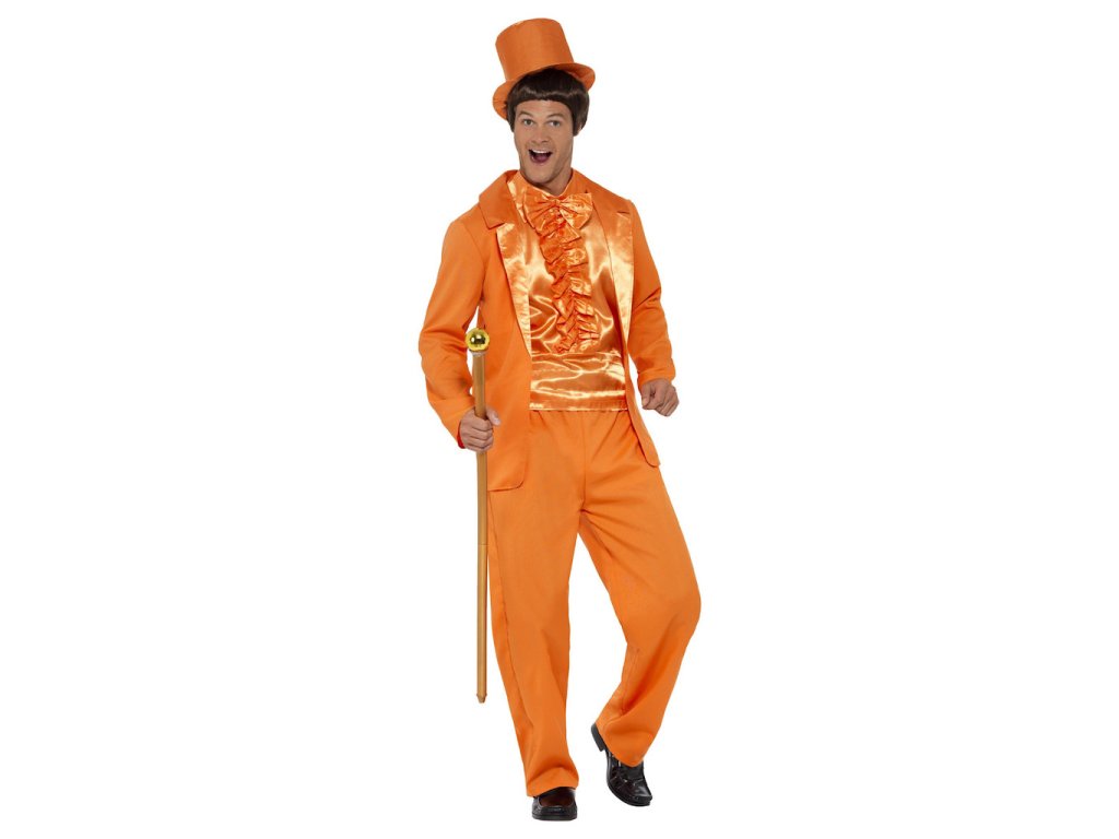 Kostým, inspirovaný populárním filmem, zahrnuje oranžové sako, kalhoty, falešnou košili a stylový klobouk, který vám pomůže vyniknout jako dvojice nezapomenutelných postav.