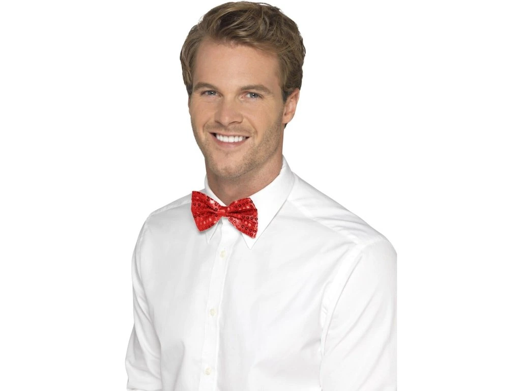 Flitrový motýlek v červené barvě oživí jednoduchý oblek a je vhodný na večírky, oslavy narozenin nebo také ke kostýmu klauna.