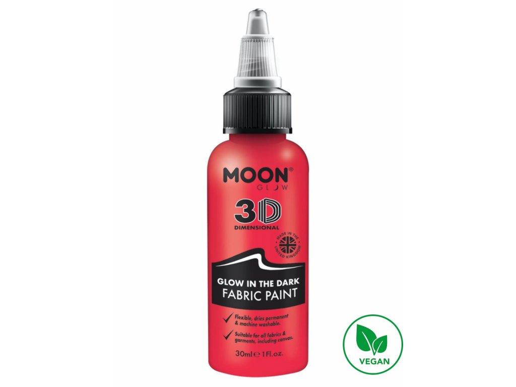 Vysoce kvalitní červená 3D barva na textil, která po nasvícení zdrojem světla ve tmě sama svítí.