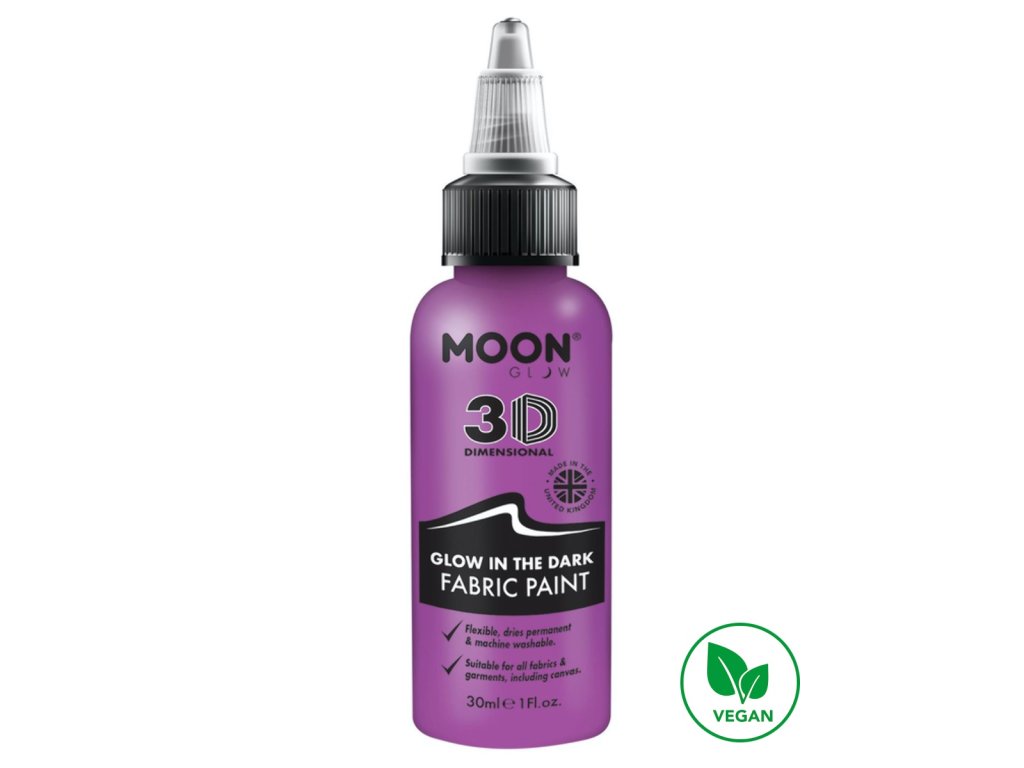 Vysoce kvalitní fialová 3D barva na textil, která po nasvícení zdrojem světla ve tmě sama svítí.