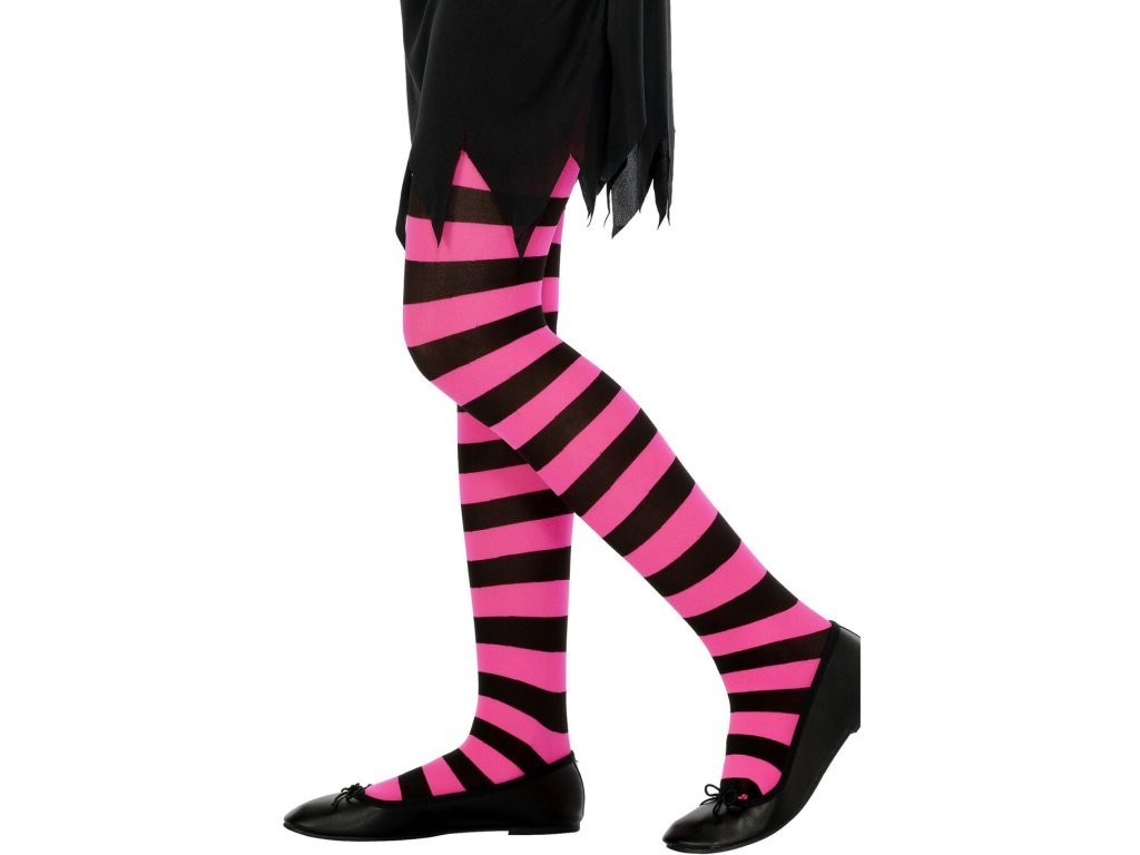Punčocháče v černé barvě s růžovými horizontálními pruhy využijete pro své dítě například ke kostýmu čarodějnice.