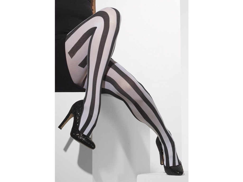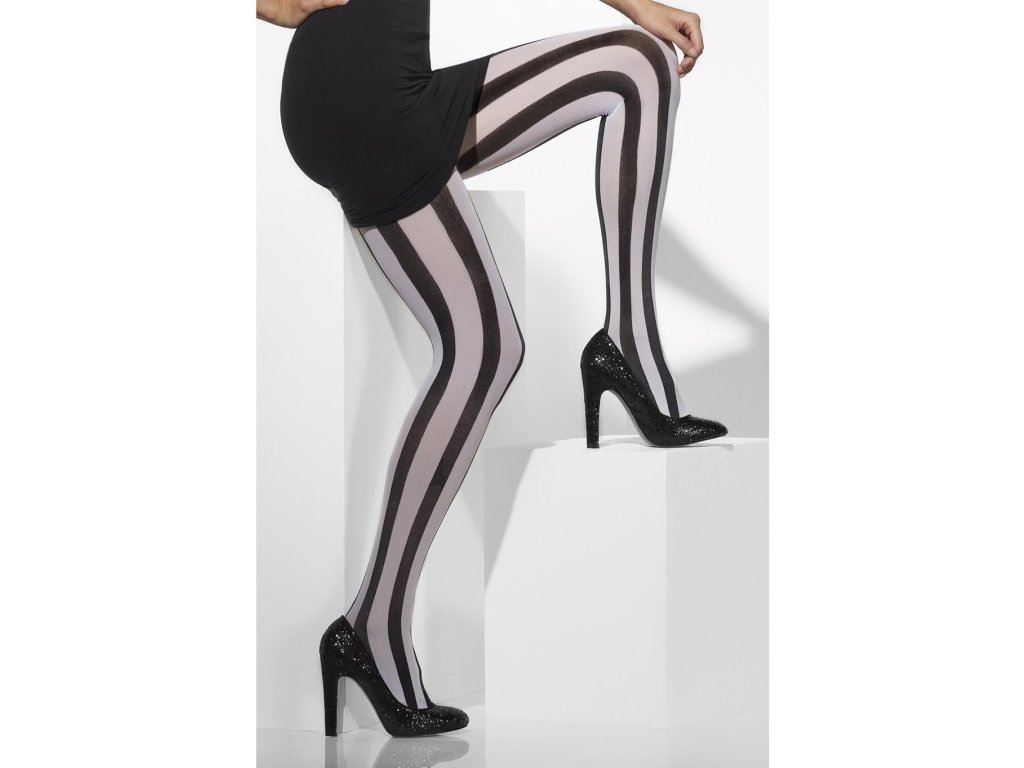 Punčocháče v bílé barvě s černými svislými pruhy využijete k šatům na párty ve stylu 30. let, dále také ke kostýmu vězeňkyně nebo sexy zdravotní sestřičky.