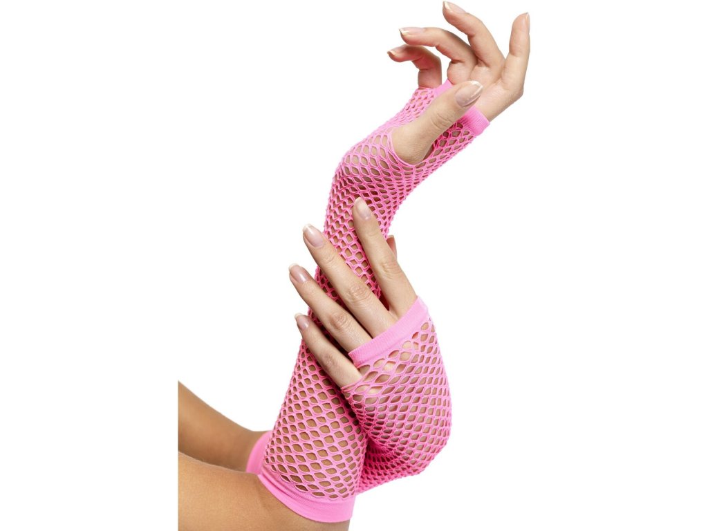 Dlouhé síťované rukavice v růžové barvě bez prstů jako luxusní doplněk kostýmu víly či panenky Barbie. Fádní kostým urozené princezny, magické víly či panenky Barbie lze oživit síťovanými rukavicemi, které obyčejný převlek povznesou do honosných výšin.