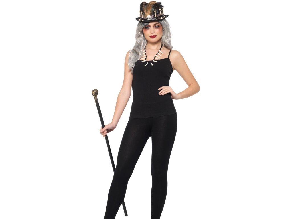 SADA OBSAHUJE: cylindr, náhrdelník, hůlka s lebkou