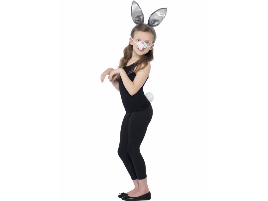 Králíček se neobejde bez oušek a totéž platí u dětské sady králíček. Šedá králičí ouška, čumáček s fousy a roztomilý bílý ocásek rozněžní každého. Sada oušek, čumáku a ocásku z malé slečny vytvoří dokonalého králíčka. Vhodné na narozeninové party a karnevaly.