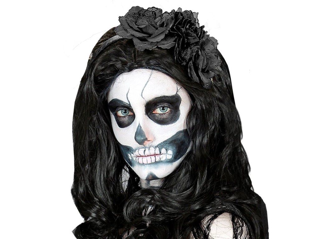 Krémová bílá vodou ředitelná barva dobře kryje a snadno ho rozetřete prsty nebo štětcem na make-up. S jeho pomocí vykouzlíte dokonalý vzhled kostlivce.
