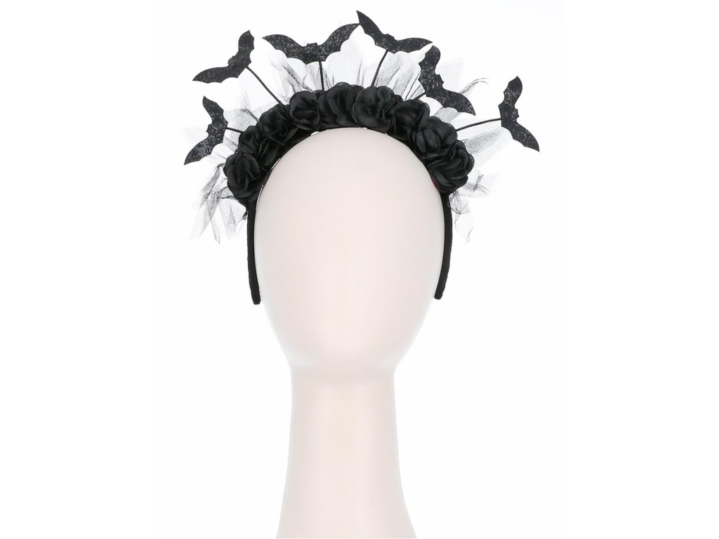 Domů › Tematické party › Halloween › Černá čelenka s růžemi a netopýry