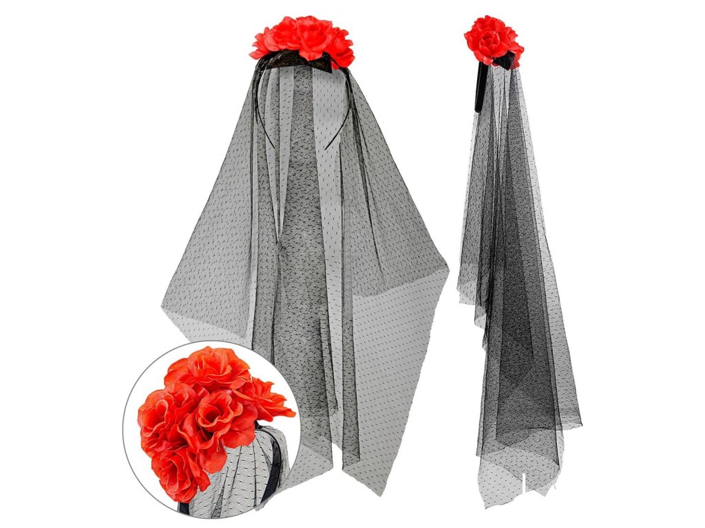 Domů › Tematické party › Halloween › Černý závoj s růžemi (čelenka)