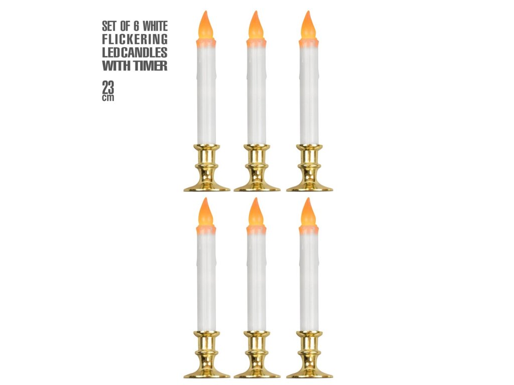 LED svíčky s časovačem, 23cm, 6ks