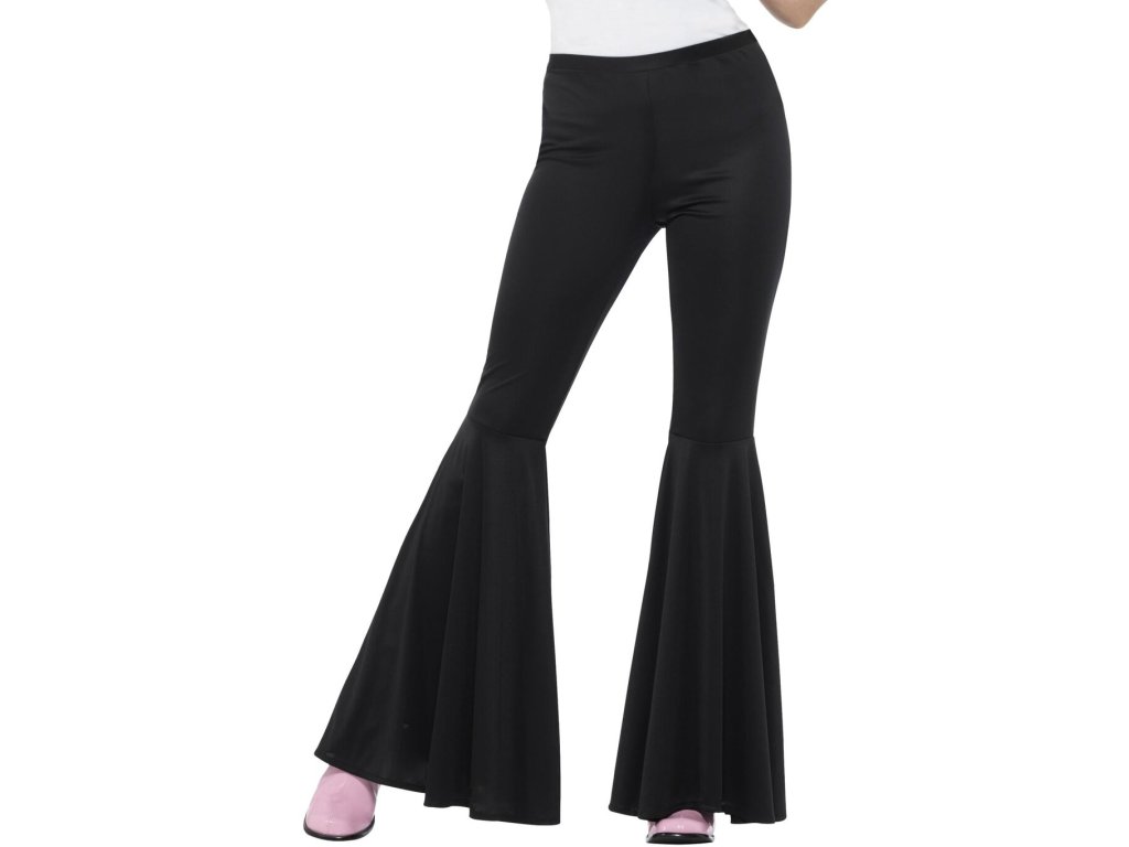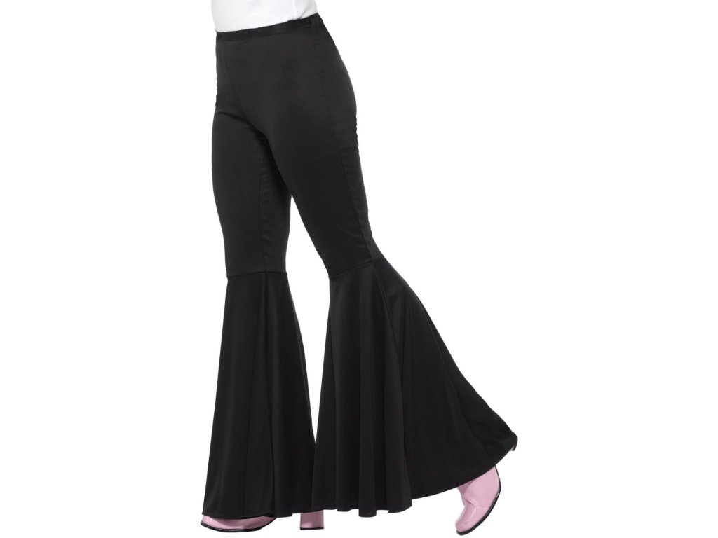 Tyto výrazné černé kalhoty s rozšířenými nohavicemi vás promění v hvězdu každé párty