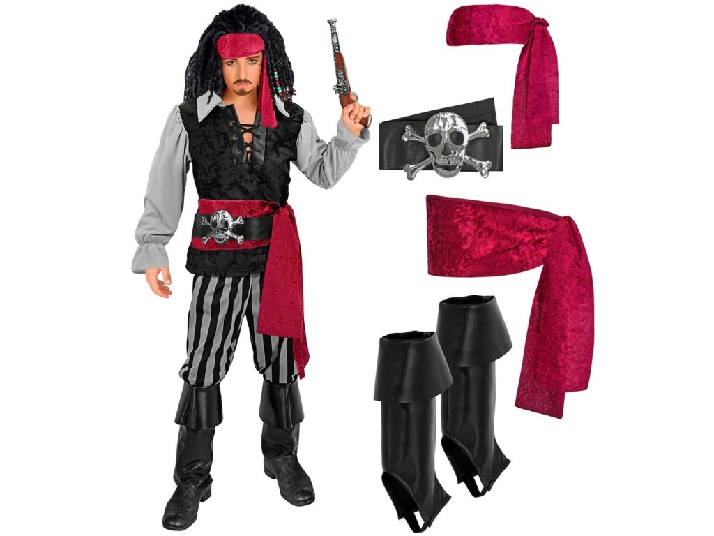 Balení obsahuje: košile s vestou, kalhoty, šerpa, opasek, čelenka, návleky na boty