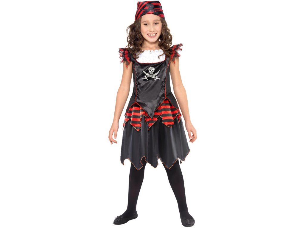 Dětský kostým je vhodný pro odvážné dívky, které si rády prosazují svou. Až se bude chtít vaše dcera stát vládkyní všech moří, pořiďte jí kostým pirátky, se kterým všeho dosáhne! Na pirátku si může hrát na karnevalu, narozeninové oslavě či během Halloweenu. Image neohrožené pirátky dodáte šavlí nebo třeba pirátskou vlajkou.