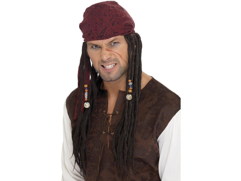 Jack Sparrow je legendární postava filmu Piráti z Karibiku. I vy se jím snadno můžete stát a překvapit okolí na pirátské party nebo Halloweenském večírku. Pirátský šátek s dredy a ozdobami je určený pro pořádné pirátské kapitány, kteří umí ovládat svůj koráb.