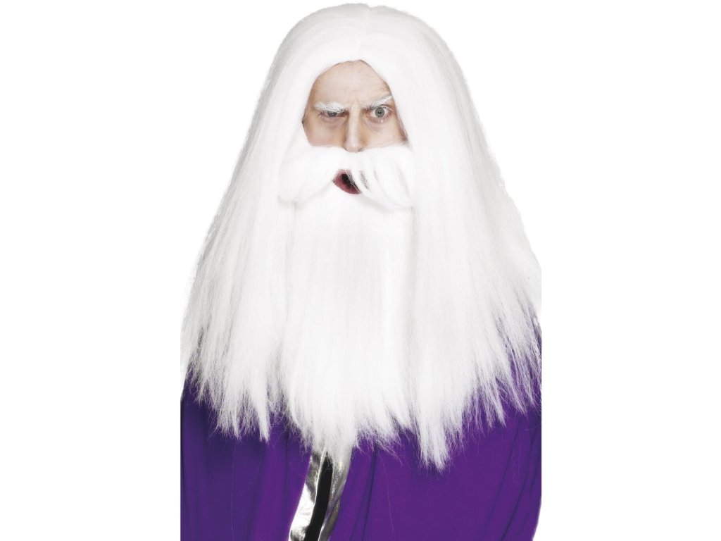 Vykouzlete si správný vzhled čaroděje nebo kouzelníka pomocí bílé paruky a hustých vousů.