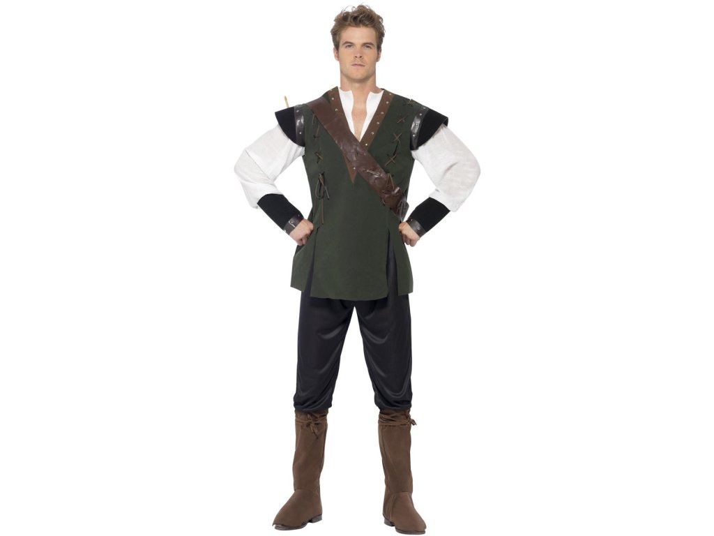 Tento převážně zelený kostým obsahuje vše, co potřebujete, abyste se proměnili v legendárního hrdinu včetně pouzdra na šípy a návleků na boty. Ideální pro všechny, kteří chtějí na tematických večírcích zaujmout a vnést do nich dobrodružnou atmosféru.