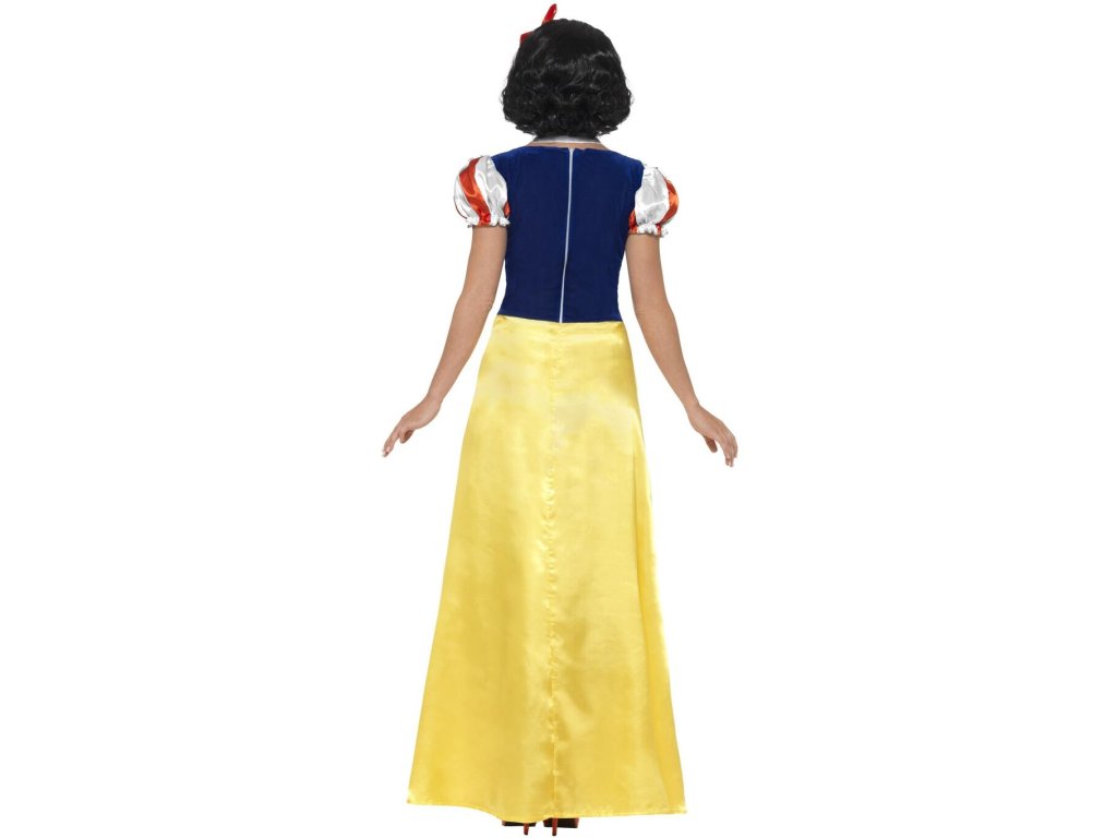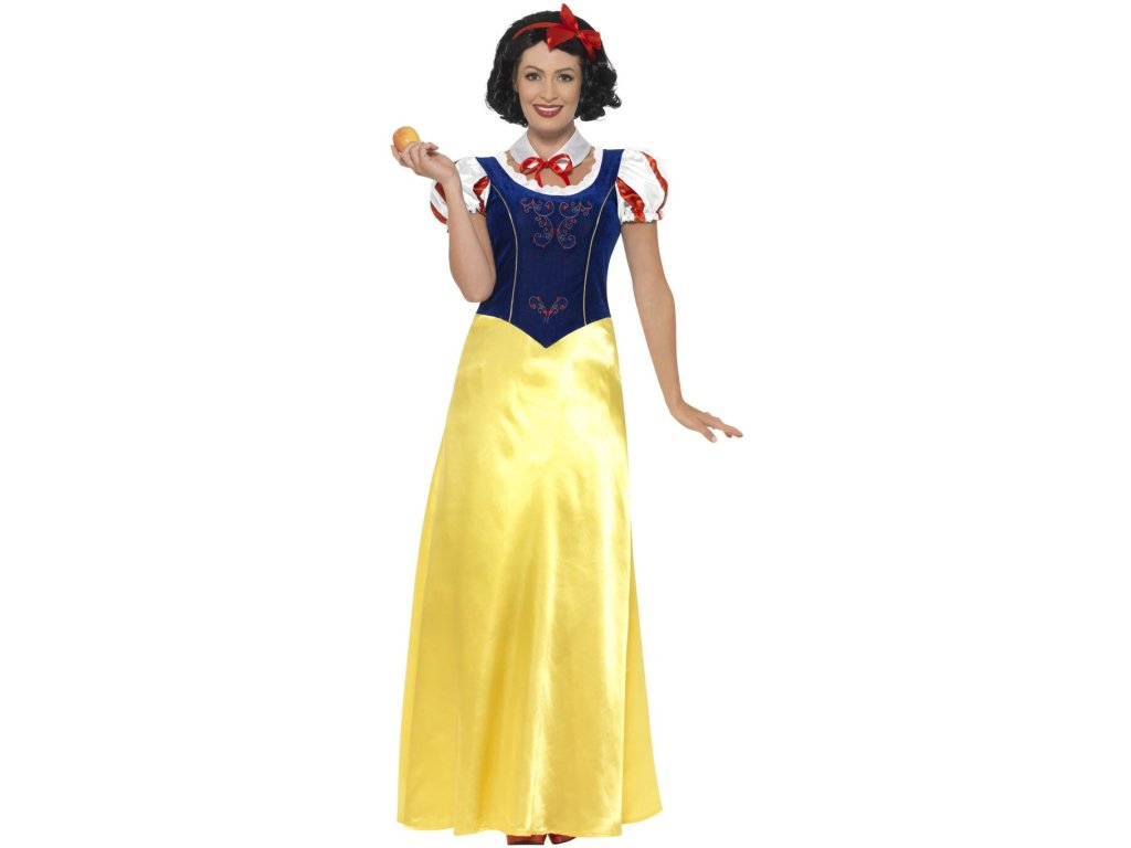 Sněhurka bloudící lesem narazila na karnevalovou párty. Je potřeba všem přítomným něco vypít, sníst a možná se objeví i sedm trpaslíků. Netrpělivě bude ovšem nejvíc vyhlížet prince, do kterého se zamiluje. Součást kostýmu jsou šaty, límeček a čelenka s mašlí.