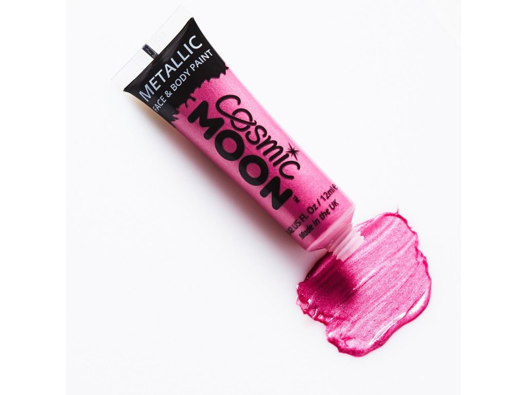 Růžová metalicky třpytivá barva na vodní bázi připravená k použití rovnou z tuby.