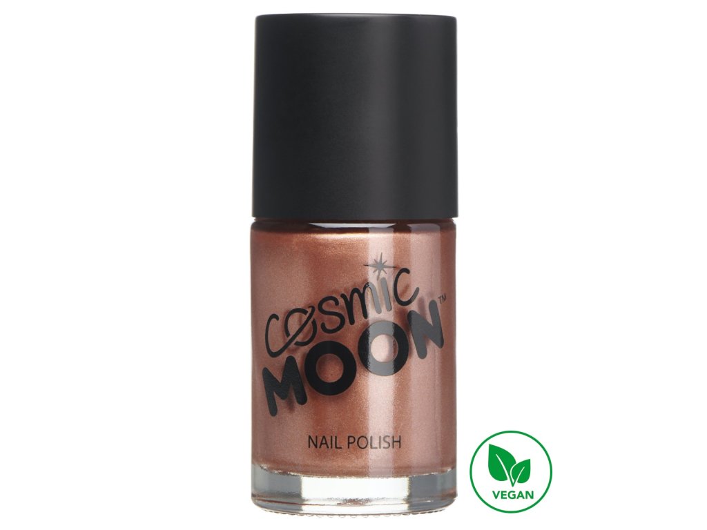 Růžovo-zlatý metalicky třpytivý lak na nehty, rychle schnoucí.
