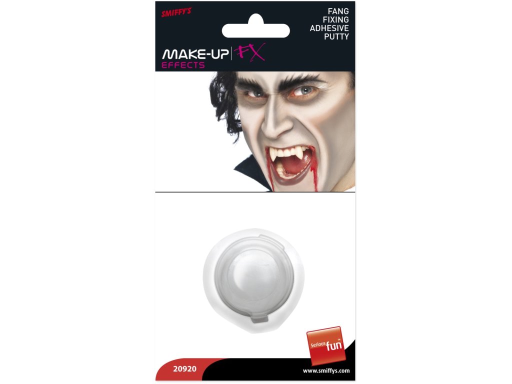 Nezbytnou věcí každého upíra jsou jeho krvelačné špičáky budící hrůzu ve všech okolo. Novodobý upír potřebuje k tomu, aby jeho tesáky pořádně držely, lepidlo pro připevnění upířích zubů.