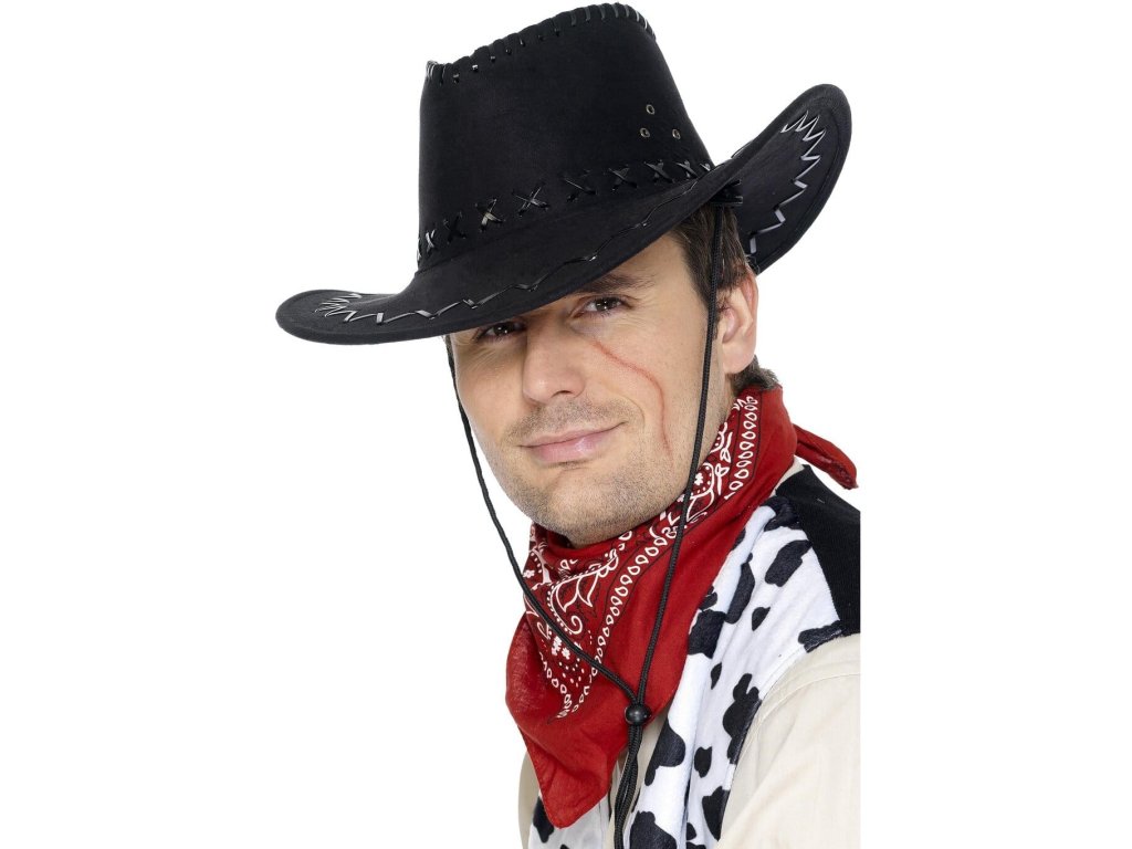 Co byste to byli za kovboje či banditu, kdybyste neměli kovbojský klobouk. Semišový klobouk v černé barvě s rychloutahovací šňůrkou je vhodným doplněk ke kostýmu kovboje na karneval, tábory či večírky, ale využijete jej i na taneční country zábavu. A jako bonus bude klobouk sloužit i jako ochrana před rozpáleným sluncem.